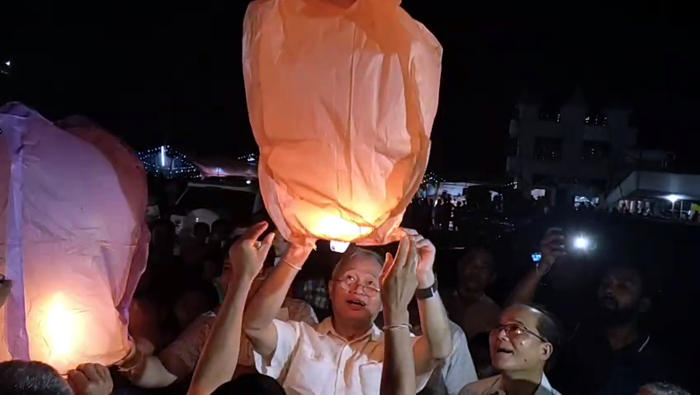 Earlier in the evening, Supradip Chakma inaugurated the Cheebar weaving process and took part in the Panchsheel prayer ceremony. He also visited the Cheebar weaving hall and later released sky lanterns in honor of the Chulamani Temple’s worship activities.